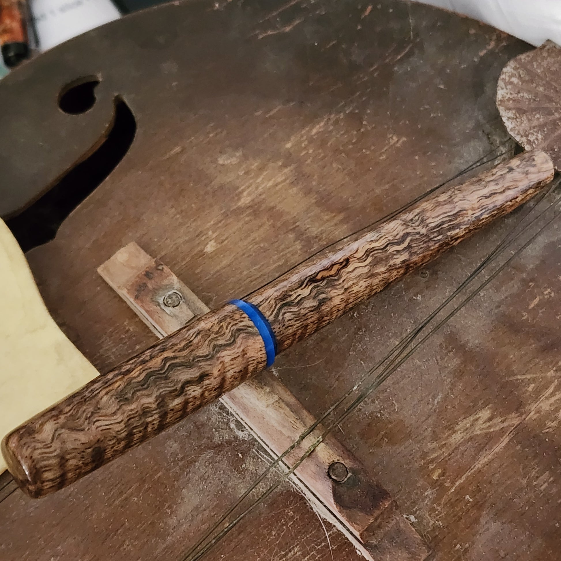 The curly mango for this pen came from Indonesia. It has been stabilized with resin to make it more durable. It is equipped with a #6 Jowo nib,EF.