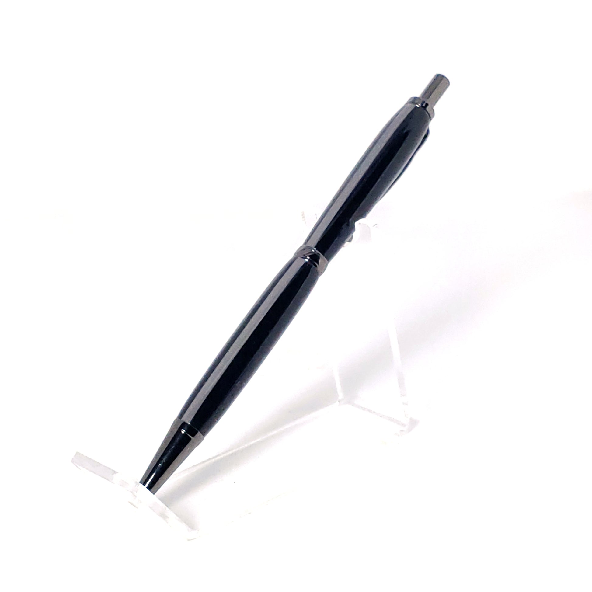 This is a click pen with a great line. Slim design fits into uniform font and sleeve pockets.