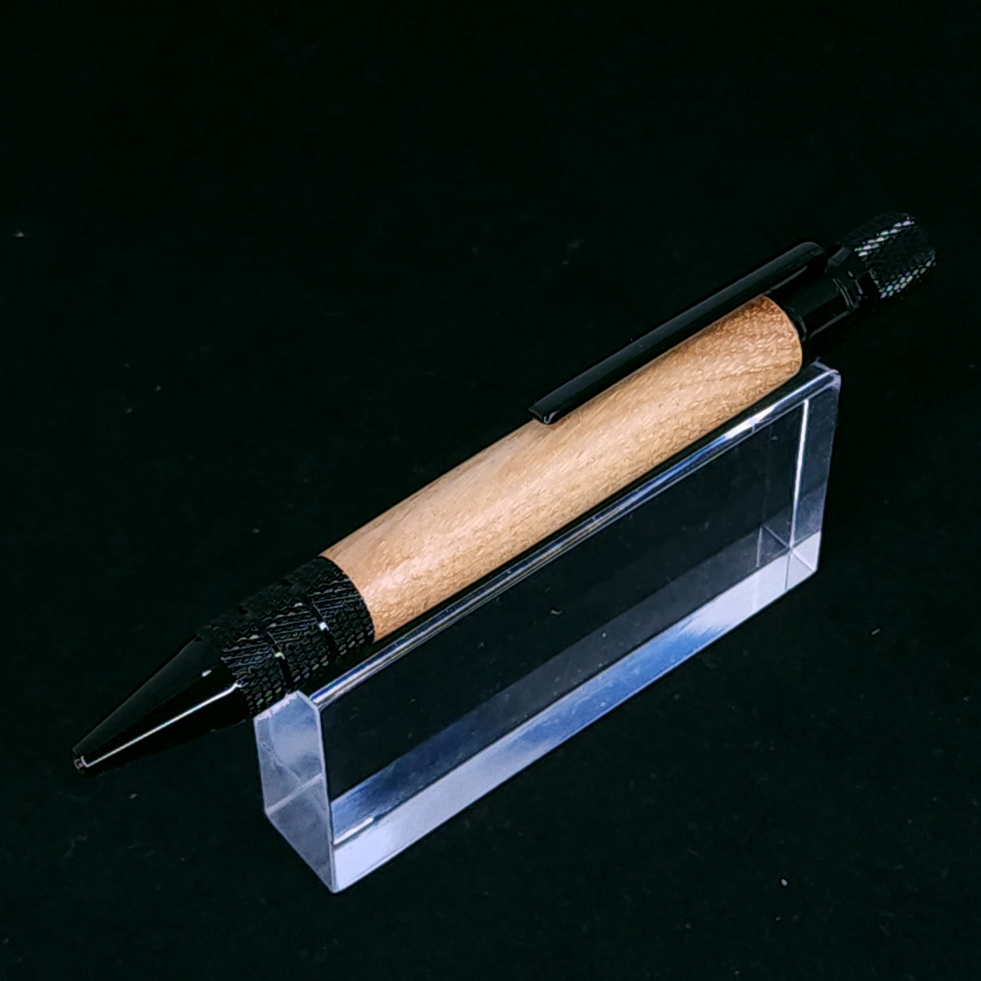 This is a shorter twist pen. It has good weight and feels good in the hand while writing. The body of this pen is made of Myrtle from the Oregon coast. This is a very popular tone wood. It is exported to Asia to make guitars.