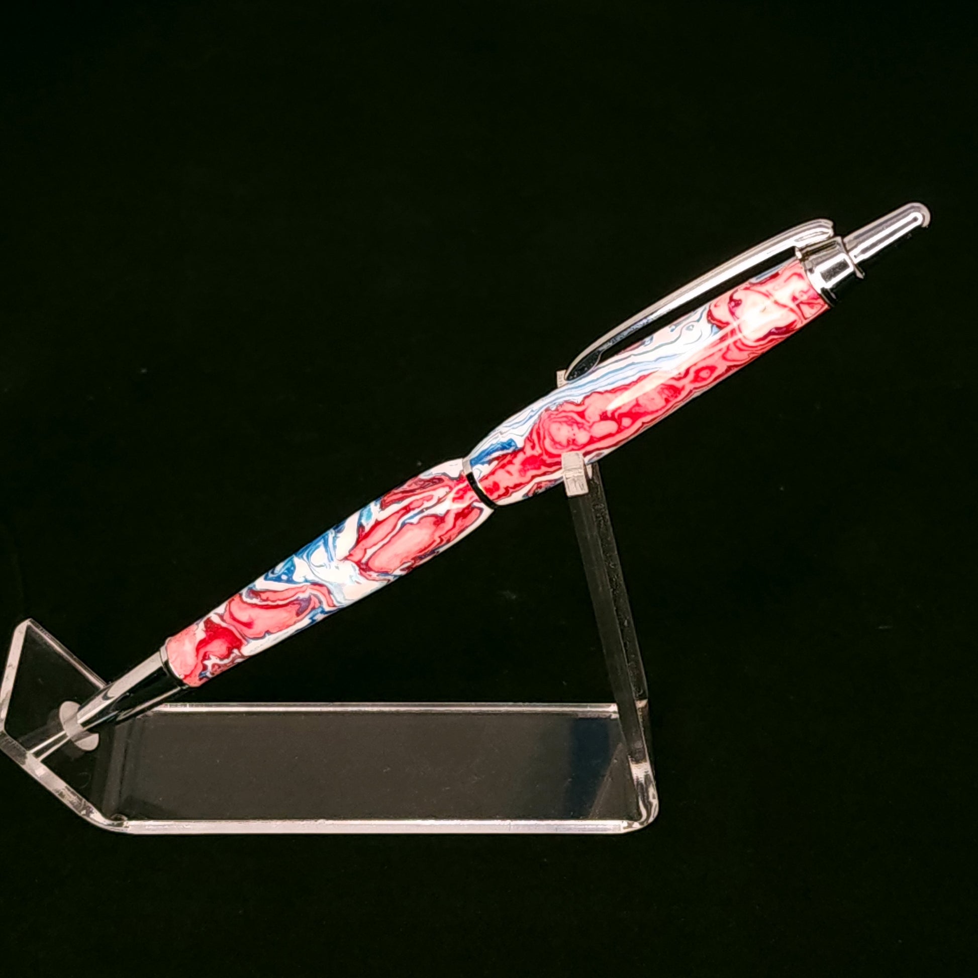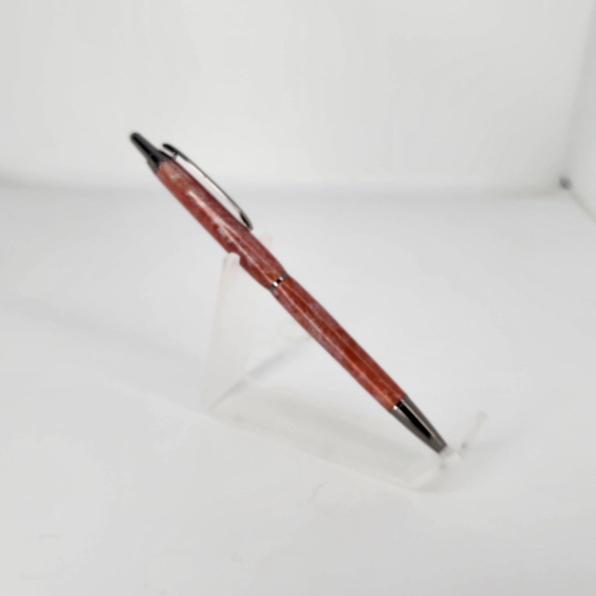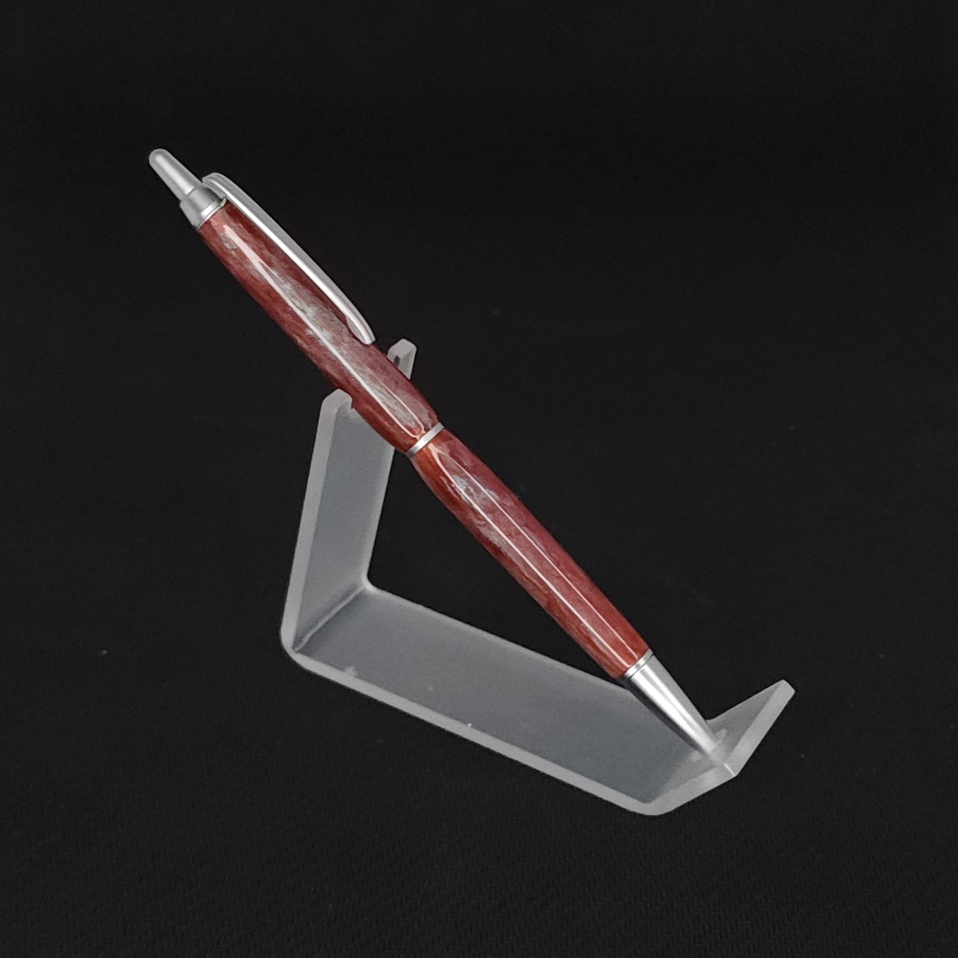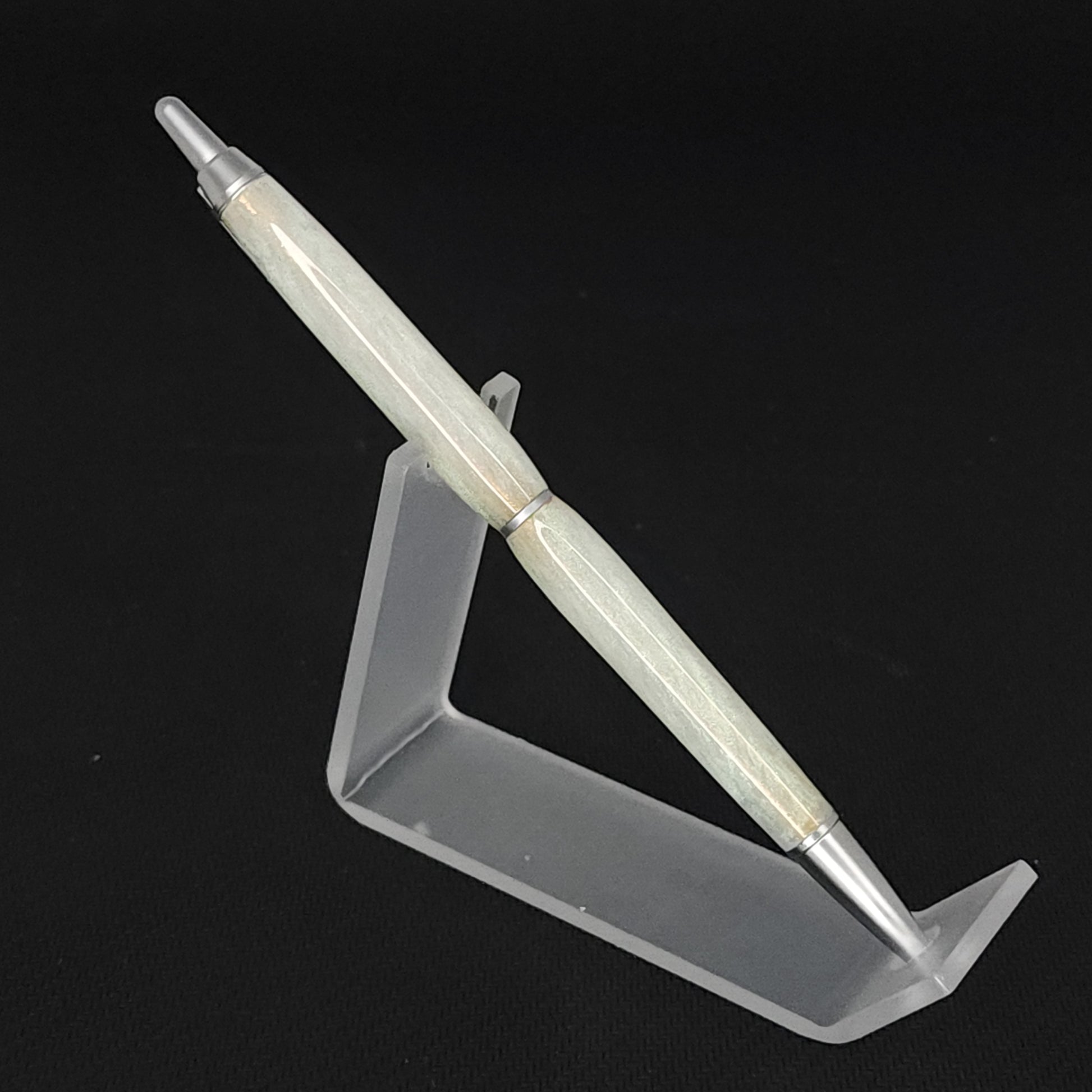 These pens are made with resin we poured. The color of the pens is from the mica powder we used. This pigment/mica company started as a paint company for cars. They use Japanese names for all of their colors.