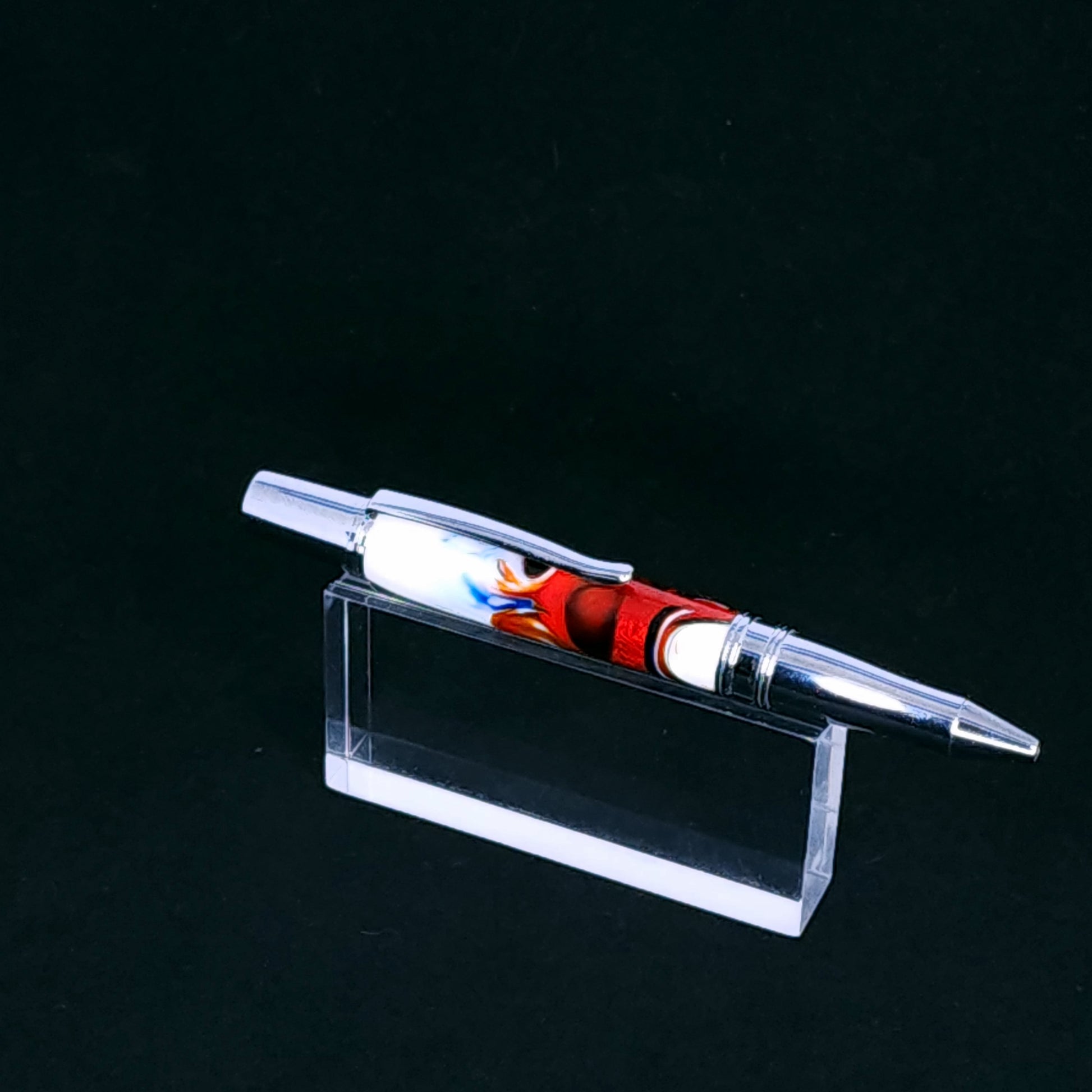 Translucent Red with White and Blue Twist Pen